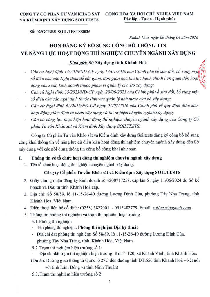 Trang chủ Giới thiệu Tin tức – Sự kiện Dự án đã thực hiện Liên hệ × Blog Details Page Tổng quan-Uncategorized-CÔNG BỐ BỔ SUNG THÔNG TIN VỀ NĂNG LỰC HOẠT ĐỘNG THÍ NGHIỆM CHUYÊN NGÀNH XÂY DỰNG CÔNG BỐ BỔ SUNG THÔNG TIN VỀ NĂNG LỰC HOẠT ĐỘNG THÍ NGHIỆM CHUYÊN NGÀNH XÂY DỰNG 09/04/2026 admin Share: About Author Hanh Grossnickle Senior Engineer Fugit quasi sit sint architecto, dolorum, harum est facilis cumque debitis aperiam veniam qui dele niti possimus distinctio quos sapiente minima officiis assum. Leave a Comment Cancel replyYour email address will not be published. Required fields are marked *Comment *Name * Email * Website * Lưu tên của tôi, email, và trang web trong trình duyệt này cho lần bình luận kế tiếp của tôi. CATEGORIES Tin tức - Sự kiện(21)Uncategorized(2) RECENT POSTSn 9 dấu hiệu nhận biết sếp tồi 10/08/2018 4 đức tính cần có của một sếp giỏi 10/08/2018 Các chuyên gia mổ xẻ những sự cố xây dựng 10/08/2018 SUBSCRIPTIONn TAG