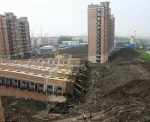 Tòa nhà cao 13 tầng ở thành phố Thượng Hải đổ sập xuống để lộ phần móng có kết cấu lỏng lẻo hồi cuối tuần trước, khi đang hoàn thiện để đón các cư dân đầu tiên dọn vào ở khiến một công nhân thiệt mạng.